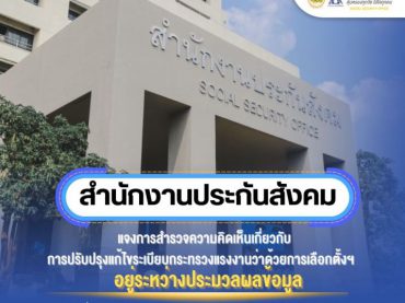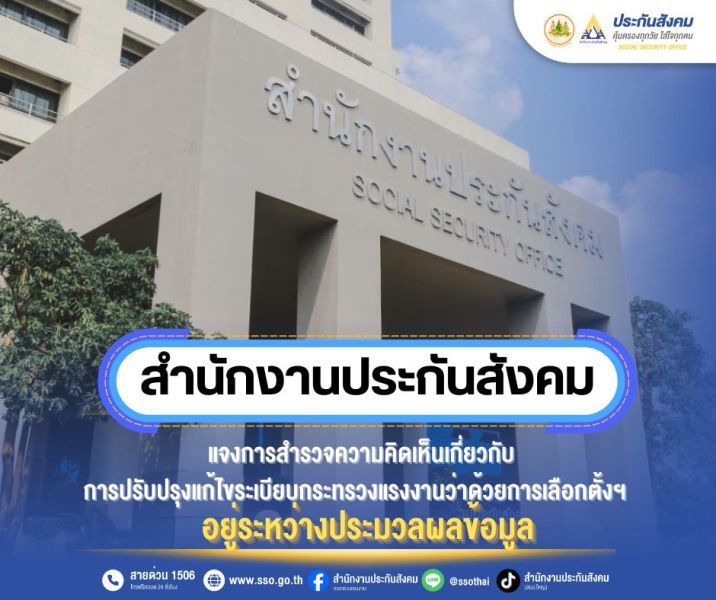 ประกันสังคมแจงการสำรวจความคิดเห็นเกี่ยวกับการปรับปรุงแก้ไขระเบียบ กระทรวงแรงงานว่าด้วยการเลือกตั้งฯ อยู่ระหว่างประมวลผลข้อมูล