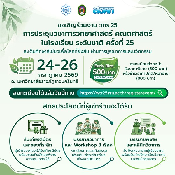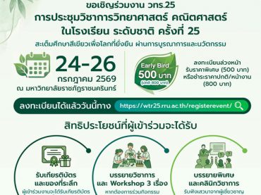 ต่อยอดองค์ความรู้สู่การศึกษาสีเขียว สสวท. เชิญชวนครู–นักวิชาการ ส่งผลงานวิชาการนำเสนอใน วทร.25