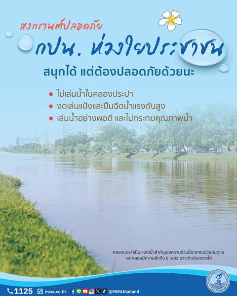 กปน. ห่วงใยประชาชน เตือน “สงกรานต์ปลอดภัย” งดเล่นน้ำคลองประปา มีโทษปรับ-จำคุก