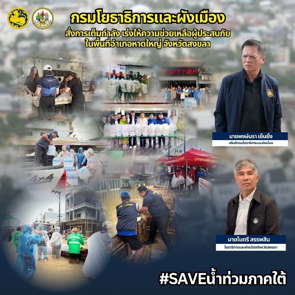 กรมโยธาธิการและผังเมือง สั่งการเต็มกำลัง เร่งให้ความช่วยเหลือผู้ประสบภัยในพื้นที่อำเภอหาดใหญ่ จังหวัดสงขลา