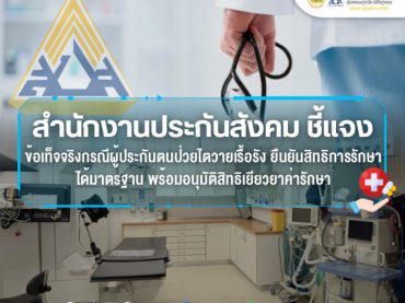 สำนักงานประกันสังคมชี้แจงข้อเท็จจริงกรณีผู้ประกันตนป่วยไตวายเรื้อรังยืนยันสิทธิการรักษาได้มาตรฐาน พร้อมอนุมัติสิทธิเยียวยาค่ารักษา