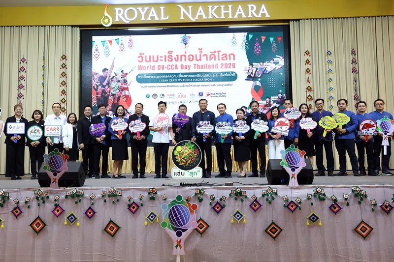 เมื่อวันที่ 27 กุมภาพันธ์ 2569 ที่โรงแรมรอยัลนาคารา อ.เมือง จ.หนองคาย ได้มีการจัดงาน “มหกรรมวันมะเร็งท่อน้ำดีโลก (World OV CCA Day) และการประกวดนวัตกรรมการสื่อสารรณรงค์ “คนอีสานรุ่นใหม่ ปลอดพยาธิใบไม้ตับและมะเร็งท่อน้ำดี” – ISAN ZERO OV HACKATHON โดยมีประชาชน นักเรียน นักศึกษาและบุคลากรของกระทรวงสาธารณสุขมาร่วมงานกว่า 300 คน