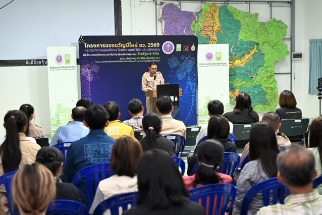 ดร.วิภารัตน์ ดีอ่อง ผู้อำนวยการสำนักงานการวิจัยแห่งชาติ กล่าวว่า วช. ได้สนับสนุนการพัฒนา “นวัตกรรมเตาไบโอชาร์พลังงานชุมชน BioCycle Kiln” ภายใต้แผนงานสำคัญตามยุทธศาสตร์ ววน. ในประเด็น “ประเทศไทยปลอดภัยจาก PM2.5” โดยมุ่งลดแหล่งกำเนิดฝุ่นควันตั้งแต่ต้นทาง นวัตกรรมดังกล่าวเป็นการนำเทคโนโลยีมาใช้ในการจัดการเศษวัสดุเหลือทิ้งทางการเกษตร แปรรูปเป็นไบโอชาร์เพื่อนำไปปรับปรุงและบำรุงดิน เพิ่มประสิทธิภาพการผลิต ควบคู่กับการสร้างมูลค่าเพิ่มทางเศรษฐกิจให้แก่เกษตรกรอย่างเป็นรูปธรรม