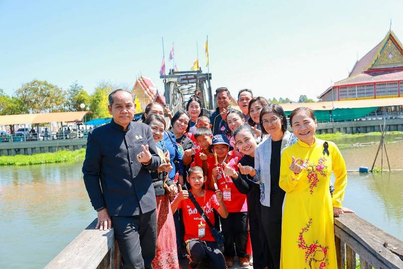 ในโอกาสนี้ ประธานและคณะ ได้รับชมการแสดงศิลปวัฒนธรรมสวยงามและโดดเด่นของชุมชน เยี่ยมชมพิพิธภัณฑ์สิ่งของโบราณ ชั้น 2 และชมวิว 360 องศา คลองสองพี่น้อง ชั้น 5 ณ สุ่มปลายักษ์ ชมการขับเสภา เยี่ยมชม ชอป ชิม ตลาดน้ำสะพานโค้ง – สุ่มปลายักษ์ ชมการสาธิต และทำกิจกรรม (Workshop) อาทิ บัวลอยญวน ปลาหมำสมุนไพรทอดกรอบ ซึ่งเป็น 1 จังหวัด1 เมนู เชิดชูอาหารถิ่น จังหวัดสุพรรณบุรี ประจำปีงบประมาณ พ.ศ. 2566 ชื่นใจลอดช่องเกสรบัวหลวง เป็ดบ้านญวน ขนมไทย ด้านภูมิปัญญาทางวัฒนธรรม อาทิ เปลญวน หัตถสานจากผักตบชวา หัตถสานจากเชือกมัดฟาง และการเรียนรู้ศิลปะ “ละเลงสี”