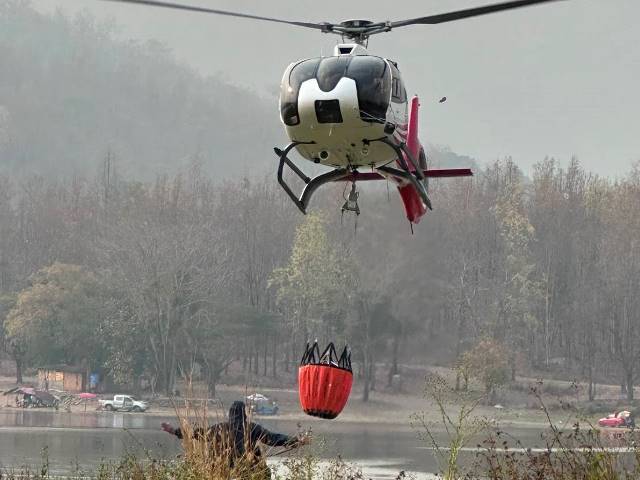 ทั้งนี้ จากกรณีพื้นที่อำเภอบ้านโฮ่ง จังหวัดลำพูน ซึ่งเกิดไฟป่าหลายจุดในพื้นที่ป่าสงวนแห่งชาติและป่าอนุรักษ์ที่มีภูมิประเทศเป็นภูเขาสูงชัน ล่าสุดกระทรวงทรัพยากรธรรมชาติและสิ่งแวดล้อมได้สนับสนุนเฮลิคอปเตอร์เข้าปฏิบัติภารกิจทิ้งน้ำรวม 38 เที่ยว ปริมาณน้ำ 19,000 ลิตร สามารถควบคุมไฟในจุดเสี่ยงได้สำเร็จ และปัจจุบันไม่พบจุดความร้อนเพิ่มเติมในบริเวณดังกล่าว