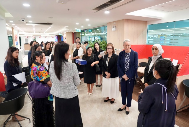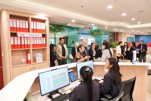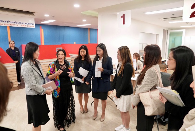 ภายหลังการหารือ อธิบดีกรมทรัพย์สินทางปัญญาได้นำคณะเข้าเยี่ยมชมศูนย์บริการทรัพย์สินทางปัญญาครบวงจร (IP One) ซึ่งจัดตั้งขึ้นเพื่อยกระดับการให้บริการแบบเบ็ดเสร็จ ณ จุดเดียว ครอบคลุมตั้งแต่การรับคำขอจดทะเบียนทรัพย์สินทางปัญญา บริการวิเคราะห์แนวโน้มเทคโนโลยีจากฐานข้อมูลสิทธิบัตรทั่วโลก บริการสืบค้นข้อมูลด้วย AI บริการด้านกฎหมายและการระงับข้อพิพาท บริการให้คำปรึกษาด้านทรัพย์สินทางปัญญาเชิงลึก เพื่ออำนวยความสะดวกแก่ภาคธุรกิจและประชาชนให้เข้าถึงบริการด้านทรัพย์สินทางปัญญาได้อย่างสะดวก รวดเร็ว และมีประสิทธิภาพ โดยมีเจ้าหน้าที่ผู้เชี่ยวชาญให้คำแนะนำอย่างใกล้ชิด เพื่อส่งเสริมการใช้ทรัพย์สินทางปัญญาเป็นเครื่องมือสร้างมูลค่าเพิ่มและขยายโอกาสทางการค้าในระดับสากล อันช่วยลดขั้นตอน ระยะเวลา และต้นทุนในการดำเนินธุรกิจอย่างเป็นรูปธรรม