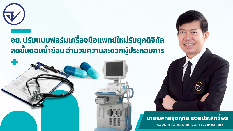 นายแพทย์รุ่งฤทัย มวลประสิทธิ์พร รองเลขาธิการคณะกรรมการอาหารและยา เปิดเผยว่า สำนักงานคณะกรรมการอาหารและยา (อย.) ได้ทำการปรับปรุงแบบฟอร์มคำขอที่เกี่ยวข้องกับการประกอบธุรกิจเครื่องมือแพทย์ เพื่อให้สอดรับกับบริบทของสังคมดิจิทัลและเทคโนโลยีทางการแพทย์ที่เปลี่ยนแปลงไป โดยเฉพาะเครื่องมือแพทย์ที่ไม่มีลักษณะทางกายภาพ เช่น ซอฟต์แวร์วินิจฉัยโรค หรือโปรแกรมประมวลผล ทางการแพทย์ต่าง ๆ ซี่งมีการเปลี่ยนแปลงสำคัญ ดังนี้