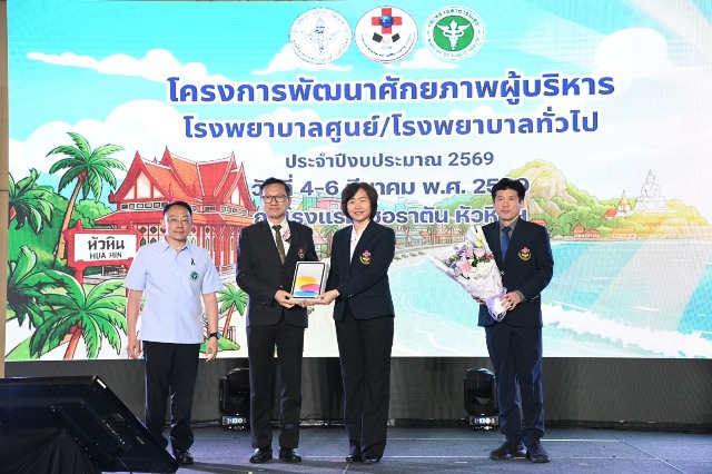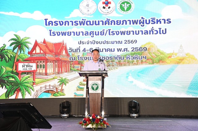 วันที่ 5 มีนาคม 2569 ที่ โรงแรม เชอราตัน หัวหิน รีสอร์ทแอนด์สปา จ.เพชรบุรี นพ.สมฤกษ์ จึงสมาน ปลัดกระทรวงสาธารณสุข เปิดการประชุมวิชาการพัฒนาศักยภาพผู้บริหารโรงพยาบาลศูนย์/โรงพยาบาลทั่วไป ประจำปีงบประมาณ พ.ศ. 2569 พร้อมบรรยายพิเศษในหัวข้อ “ทิศทางและอนาคตระบบสาธารณสุขไทย : วิกฤตสู่วิสัยทัศน์ใหม่” โดยมี พันจ่าเอก สาคร สิทธิศักดิ์ รองผู้ว่าราชการจังหวัดประจวบคีรีขันธ์ นพ.ศักดา อัลภาชน์ รองปลัดกระทรวงสาธารณสุข ดร.นพ.ปรีชา เปรมปรี ผู้ตรวจราชการกระทรวงสาธารณสุข เขตสุขภาพที่ 5 พญ.ภาวิณี เอี่ยมจันทน์ ประธานชมรมโรงพยาบาลศูนย์/โรงพยาบาลทั่วไป คณะกรรมการชมรม ตลอดจนผู้บริหารที่เกี่ยวข้อง เข้าร่วม 300 คน