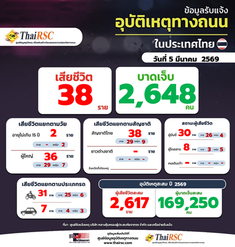 สถานการณ์อุบัติเหตุทางถนนในประเทศไทย วันที่ 5 มี.ค.69