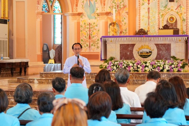 โอกาสนี้ บาทหลวงวิเชียร ฉันทพิริยะกุล เจ้าอาวาสอาสนวิหารฯ กล่าวต้อนรับเเละนำชมความสวยงามของสถาปัตยกรรม เเละรับฟังประวัติความเป็นมาของอาสนวิหารพระนางมารีอาปฏิสนธินิรมล