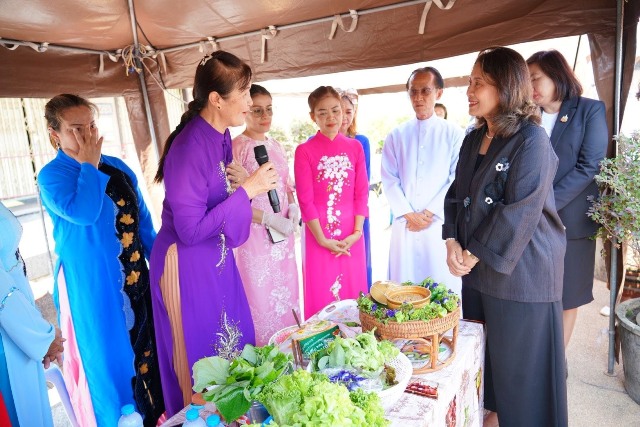 จากนั้น เยี่ยมชมตลาดวัฒนธรรม 3 ชุมชน และศูนย์เรียนรู้ชุมชนฯ บ้านเลขที่ 69 เพื่อศึกษาเรียนรู้ประวัติศาสตร์ชุมชนพหุวัฒนธรรม พร้อมชมและร่วมสาธิตการทอเสื่อกกจันทบูร ซึ่งได้รับการขึ้นบัญชีเป็นมรดกภูมิปัญญาทางวัฒนธรรม ระดับชาติ พ.ศ. 2567 ต่อมาสักการะสิ่งศักดิ์สิทธิ์ ณ ศาลเจ้าที่ตลาดล่าง พร้อมชมและร่วมสาธิตการเขียนโคมจีน และปิดท้ายด้วยการชมและร่วมสาธิตการทำอัญมณี ณ ร้านมีใจ สตูดิโอ