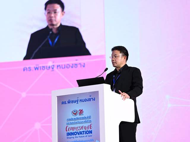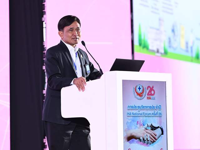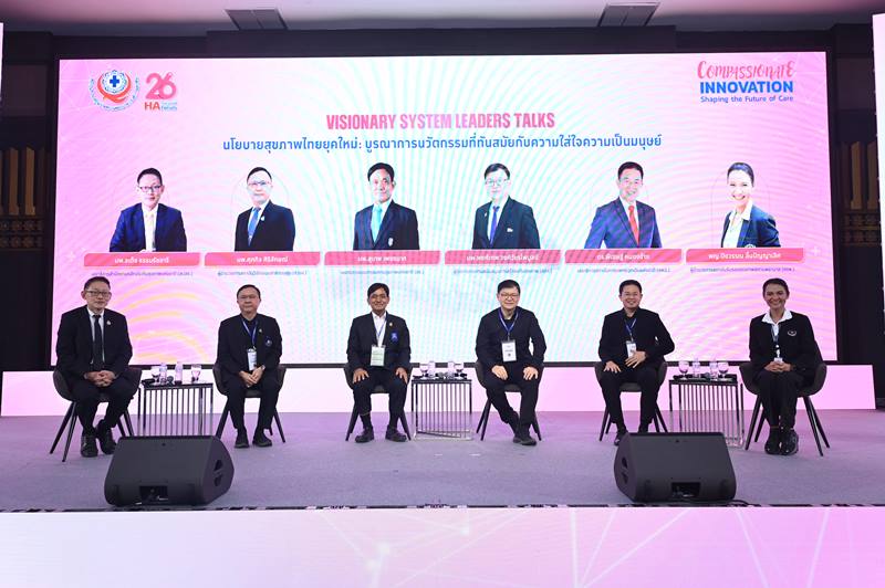 เมื่อวันที่ 11 มี.ค. 2569 ที่อาคารอิมแพ็คฟอรั่ม เมืองทองธานี ภายในงานประชุมวิชาการประจำปี HA National Forum ครั้งที่ 26 จัดโดยสถาบันรับรองคุณภาพสถานพยาบาล (องค์การมหาชน) หรือ สรพ. มีการจัดเวที Visionary System Leaders Talks นโยบายสุขภาพไทยยุคใหม่: บูรณาการนวัตกรรมที่ทันสมัยกับความใส่ใจความเป็นมนุษย์