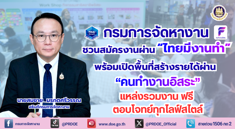 กรมการจัดหางานชวนสมัครงานผ่าน ‘ไทยมีงานทำ’ สายสกิลห้ามพลาด ‘คนทำงานอิสระ’ แหล่งรวมงานอิสระ-ฟรีที่ตอบโจทย์ทุกไลฟ์สไตล์