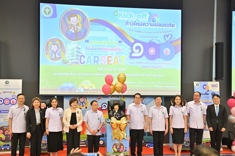 วันที่ 18 มีนาคม 2569 ที่ สถาบันสุขภาพเด็กแห่งชาติมหาราชินี กรุงเทพมหานคร นายพัฒนา พร้อมพัฒน์ รัฐมนตรีว่าการกระทรวงสาธารณสุข เปิดโครงการ “๑๐๐ โรงพยาบาล ๑๐๐ ธนาคารที่นั่งนิรภัย ร้อยดวงใจผูกพัน” โดยมี นพ.สมฤกษ์ จึงสมาน ปลัดกระทรวงสาธารณสุข พญ.อายหลัน หลี (Dr. Ailan Li) ผู้แทนองค์การอนามัยโลกประจำประเทศไทย นพ.มณเฑียร คณาสวัสดิ์ อธิบดีกรมควบคุมโรค นพ.ณัฐพงศ์ วงศ์วิวัฒน์ อธิบดีกรมการแพทย์ นายนันทวัฒน์ ศรีวรัตน์อัชกุล ผู้ช่วยกรรมการผู้จัดการใหญ่ บริษัท โตโยต้า มอเตอร์ ประเทศไทย จำกัด และผู้บริหารกระทรวงสาธารณสุข ร่วมงาน