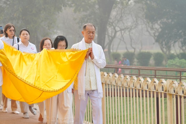พระครูวิชัยคุณาธาร รองเจ้าคณะจังหวัดสุโขทัย ในนามผู้แทนคณะสงฆ์ที่ร่วมจาริกแสวงบุญ กล่าวด้วยความปีติว่า “…การได้เดินทางมายังประเทศอินเดีย-เนปาลในครั้งนี้ เปรียบเสมือนการได้กลับมาเยือน “แผ่นดินของพ่อ” ดินแดนที่เป็นต้นกำเนิดของพระพุทธศาสนา และเป็นโอกาสสำคัญที่พุทธศาสนิกชนจะได้เห็นสถานที่จริงที่ปรากฏอยู่ในพุทธประวัติ