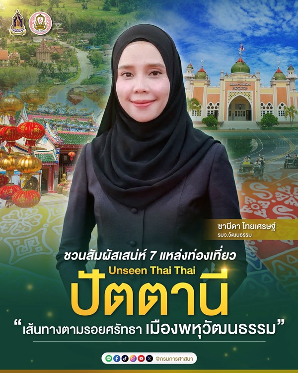 นางสาวซาบีดา ไทยเศรษฐ์ รัฐมนตรีว่าการกระทรวงวัฒนธรรม เปิดเผยว่า จังหวัดปัตตานี เป็นพื้นที่ที่มีความโดดเด่นด้านความหลากหลายทางศาสนาและวัฒนธรรม ทั้งศาสนาพุทธ ศาสนาอิสลาม และความเชื่อแบบจีน ที่ผสมผสานและอยู่ร่วมกันอย่างกลมกลืน สะท้อนผ่านวิถีชีวิต ประวัติศาสตร์ยาวนาน อาหารพื้นถิ่น และทรัพยากรธรรมชาติที่งดงาม จึงมีศักยภาพในการพัฒนาเป็นแหล่งท่องเที่ยวเชิงวัฒนธรรมที่สำคัญของประเทศ จึงกำหนดจัดกิจกรรมตามรอยเส้นทางธรรมแห่งศรัทธา “เส้นทางตามรอยศรัทธา เมืองพหุวัฒนธรรมปัตตานี จังหวัดปัตตานี” ในวันที่ 28 มีนาคม 2569 ณ อุทยานแห่งชาติน้ำตกทรายขาว อำเภอโคกโพธิ์ จังหวัดปัตตานี เพื่อสร้างการรับรู้แหล่งท่องเที่ยวเชิงวัฒนธรรมในพื้นที่จังหวัดชายแดนภาคใต้ และส่งเสริมการท่องเที่ยวในมิติศาสนาให้เป็นที่รู้จักในวงกว้าง ซึ่งเป็น 1 ใน 20 เส้นทางท่องเที่ยวมิติศาสนาที่ได้รับการส่งเสริมในปีงบประมาณ พ.ศ. 2569