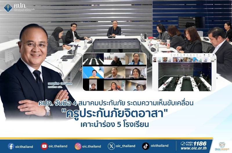 สำนักงาน คปภ. ร่วมกับสมาคมภาคอุตสาหกรรมประกันภัย 4 แห่ง ได้แก่ สมาคมประกันชีวิตไทย สมาคมประกันวินาศภัยไทย สมาคมตัวแทนประกันชีวิตและที่ปรึกษาการเงิน และสมาคมนายหน้าประกันภัยไทย เห็นชอบโครงการ “ครูประกันภัยจิตอาสา” ประจำปี 2569 โดยกำหนดโรงเรียนระดับประถมศึกษานำร่อง 5 แห่งในพื้นที่ห่างไกลทั่วประเทศ ครอบคลุมจังหวัดกำแพงเพชร จังหวัดศรีสะเกษ จังหวัดลพบุรี จังหวัดตรัง และจังหวัดราชบุรี