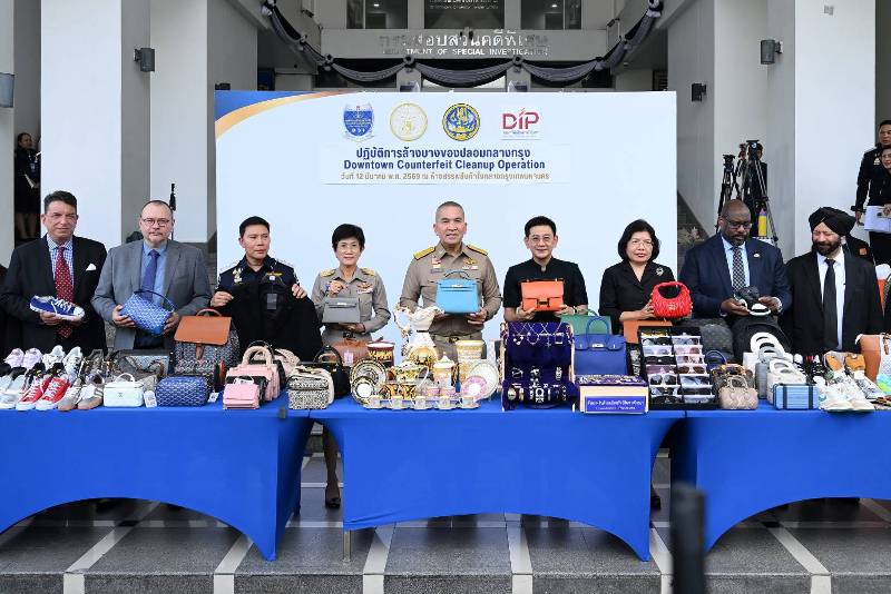 ล่าสุด ในการปราบปรามการละเมิดทรัพย์สินทางปัญญาในพื้นที่กรุงเทพมหานคร โดยความร่วมมือระหว่างกรมสอบสวนคดีพิเศษ (DSI) และกรมทรัพย์สินทางปัญญา กระทรวงพาณิชย์ เมื่อวันที่ 12 มีนาคม 2569 สามารถจับกุมผู้กระทำผิดและตรวจยึดสินค้าละเมิดทรัพย์สินทางปัญญาได้กว่า 48,000 รายการ ซึ่งเป็นสินค้าปลอมเครื่องหมายการค้าแบรนด์ดัง อาทิ Louis Vuitton, Dior, Chanel, Celine, Versace, Gucci, Hermes, Loewe และ Prada เป็นต้น ส่วนใหญ่เป็นสินค้าประเภทรองเท้า (26,620 รายการ) เสื้อผ้า (17,777 รายการ) กระเป๋า (2,464 รายการ) รวมมูลค่าความเสียหายทางเศรษฐกิจกว่า 500 ล้านบาท ทั้งนี้ เจ้าหน้าที่อยู่ระหว่างดำเนินคดีตามกฎหมาย และเตรียมขยายผลไปสู่การจับกุมแหล่งผลิต แหล่งกระจายสินค้า รวมถึงเครือข่ายที่เกี่ยวข้อง เพื่อปิดช่องทางการกระทำผิดและดำเนินคดีกับผู้กระทำความผิดอย่างถึงที่สุด