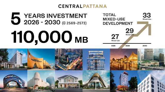 นางสาววัลยา จิราธิวัฒน์ กรรมการผู้จัดการใหญ่และประธานเจ้าหน้าที่บริหาร มบจ.เซ็นทรัลพัฒนา กล่าวว่า “เซ็นทรัลพัฒนา ภูมิใจที่การพัฒนาโครงการต่างๆ ของเราได้มีส่วนสร้างย่าน สร้างเมือง สร้างประเทศ ภายใต้การบุกเบิกโมเดลธุรกิจ Retail-Led Mixed-Use Development ที่ได้ประกาศไว้ประสบความสำเร็จอย่างชัดเจนตลอด 45 ปี โดยมีโครงการรวมทั้งสิ้น 142 โครงการ ประกอบด้วย 45 ศูนย์การค้า, 16 คอมมูนิตี้มอลล์, 11 อาคารสำนักงาน, 17 โรงแรม และ 53 โครงการที่อยู่อาศัย ครอบคลุมทุกมิติของการใช้ชีวิต โดยเรายังคงเดินหน้าลงทุนอย่างต่อเนื่องตามแผน 5 ปี มูลค่า 110,000 ล้านบาท (ปี 2569–2573) และคาดว่าจะมีโครงการมิกซ์ยูสเพิ่มขึ้นเป็น 33 โครงการภายในปี 2573 โดยบริษัทฯ ยังคงมุ่งเน้นการพัฒนาเพื่อความยั่งยืน ทั้งได้มีส่วนสร้างงานและกระจายรายได้ตั้งแต่ต้นน้ำจนถึงปลายน้ำรวมกว่า 1.5 ล้านตำแหน่ง และเดินหน้าสู่ Net Zero 2050 ตามแผนที่ได้ประกาศไว้”
