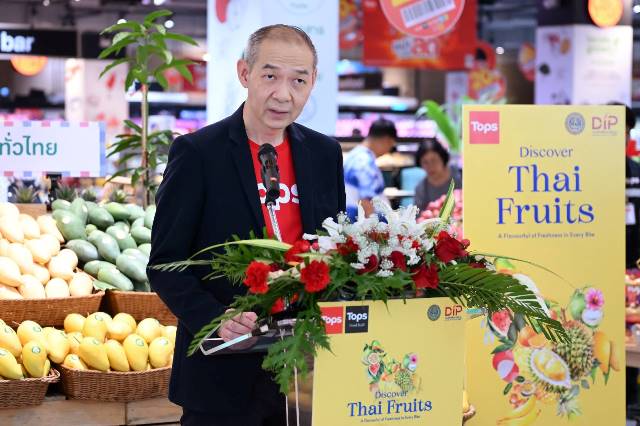 เมื่อวันที่ 26 มีนาคม 2569 ณ ศูนย์การค้าเซ็นทรัล เวสต์เกต กรมทรัพย์สินทางปัญญา กระทรวงพาณิชย์ ร่วมกับ ท็อปส์ ในเครือเซ็นทรัล รีเทล เปิดตัวแคมเปญ “Discover Thai Fruits 2026” เดินหน้าส่งเสริมผลไม้ไทยที่ได้รับการขึ้นทะเบียนสิ่งบ่งชี้ทางภูมิศาสตร์ (GI) เพื่อสร้างการรับรู้และสนับสนุนการบริโภคผลไม้ไทย โดยมีผลไม้ GI คุณภาพจากแหล่งผลิตทั่วประเทศสับเปลี่ยนหมุนเวียนมาจำหน่ายในเครือข่ายร้านท็อปส์และตลาดจริงใจ Farmers’ Market กว่า 726 สาขาทั่วประเทศต่อเนื่องตลอดทั้งปี คิกออฟแคมเปญด้วยผลไม้ยอดนิยมประจำหน้าร้อนอย่าง “มะม่วง GI” หลากหลายสายพันธุ์ ตั้งเป้าเพิ่มมูลค่าสินค้าเกษตรอัตลักษณ์ และขยายโอกาสทางการตลาดให้เกษตรกรไทย