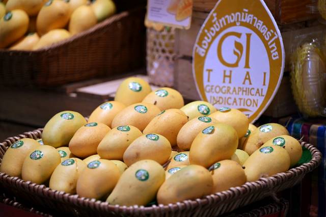 นางอรมน ทรัพย์ทวีธรรม อธิบดีกรมทรัพย์สินทางปัญญา เปิดเผยว่า ผลไม้ไทยถือเป็นหนึ่งในสินค้าเกษตรอัตลักษณ์ที่มีศักยภาพสูง ปัจจุบันประเทศไทยมีสินค้า GI ประเภทผลไม้กว่า 119 รายการ หรือประมาณ 47% ของสินค้า GI ไทยทั้งหมด (254 รายการ) โดย “มะม่วง” เป็นหนึ่งในผลไม้เศรษฐกิจสำคัญที่ได้รับความนิยมทั้งในและต่างประเทศ และได้รับการขึ้นทะเบียน GI แล้ว 13 รายการ จาก 9 จังหวัด ซึ่งล้วนมีคุณภาพโดดเด่นและสะท้อนอัตลักษณ์ของแหล่งผลิต ทั้งภูมิประเทศ ภูมิอากาศ ดิน และภูมิปัญญาการเพาะปลูกของชุมชนได้อย่างชัดเจน ทั้งยังสามารถสร้างมูลค่าทางการตลาดรวมกว่า 1,044 ล้านบาทในปี 2568 ทั้งนี้ ในช่วงฤดูร้อนเป็นช่วงที่ผลผลิตมะม่วงมีคุณภาพดีและออกสู่ตลาดเป็นจำนวนมาก จึงเป็นโอกาสสำคัญในการผลักดันการตลาดเชิงรุก เพื่อเพิ่มมูลค่าให้กับสินค้าเกษตรและสร้างรายได้ที่มั่นคงให้แก่เกษตรกรและชุมชนผู้ผลิต