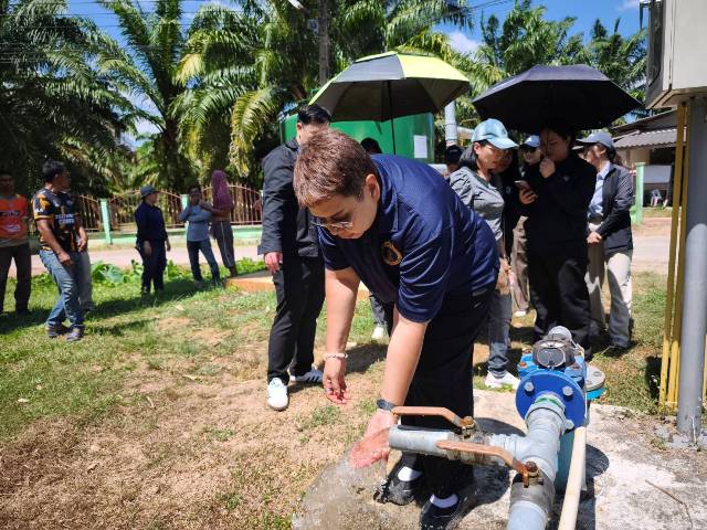 วันที่ 25 – 27 มีนาคม 2569 นางสาววรีวสยา สินธุเดชะ รองอธิบดีกรมทรัพยากรน้ำบาดาล พร้อมนางสาวสุรีย์พร มธุรพจนากุล นักวิเคราะห์งบประมาณเชี่ยวชาญ งบประมาณด้านเศรษฐกิจ 2 สำนักงบประมาณ และคณะ ลงพื้นที่บ้านนาปู หมู่ที่ 1 ตำบลดินแดง อำเภอลำทับ จังหวัดกระบี่ เพื่อติดตามการใช้ประโยชน์โครงการพัฒนาน้ำบาดาลเพื่อการเกษตรแปลงใหญ่ พื้นที่ 500 ไร่ ประจำปีงบประมาณ พ.ศ. 2568 โดยมีนางพบพร เศรษฐพฤกษา ผู้อำนวยการสำนักทรัพยากรน้ำบาดาล เขต 6 (ตรัง) เจ้าหน้าที่กองแผนงาน และเจ้าหน้าที่สำนักทรัพยากรน้ำบาดาล เขต 6 (ตรัง) ร่วมนำเสนอข้อมูลรายงานการใช้ประโยชน์โครงการ การบริหารจัดการทรัพยากรน้ำบาดาล และรับฟังปัญหาอุปสรรคจากกลุ่มเกษตรกร 18 ครัวเรือน ซึ่งมีพื้นที่การเกษตรได้รับประโยชน์ จำนวน 512 ไร่ พื้นที่ดังกล่าวเน้นปลูกปาล์ม และทุเรียน โดยรูปแบบของโครงการ ประกอบด้วย บ่อน้ำบาดาลขนาด 6 นิ้ว จำนวน 6 บ่อ เครื่องสูบน้ำไฟฟ้าแบบมอเตอร์จุ่มใต้น้ำ ขนาด 3 แรงม้า จำนวน 6 ชุด ระบบพลังงานแสงอาทิตย์ ขนาดไม่น้อยกว่า 4,800 วัตต์ จำนวน 6 ชุด เครื่องกำเนิดไฟฟ้าสำรอง ขนาดไม่น้อยกว่าขนาด 8,000 วัตต์ จำนวน 6 ชุด หอถังเหล็กเก็บน้ำชนิดรักษาแรงดัน ขนาด 120 ลูกบาศก์เมตร จำนวน 2 ถัง