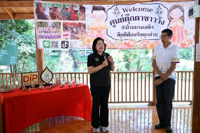 นางอรมน ทรัพย์ทวีธรรม อธิบดีกรมทรัพย์สินทางปัญญา เปิดเผยว่า การลงพื้นที่ครั้งนี้มีเป้าหมายเพื่อตรวจเยี่ยมกระบวนการผลิตสินค้า GI ตุ๊กตาชาววังบ้านบางเสด็จให้เป็นไปตามข้อกำหนดที่ขึ้นทะเบียนไว้ พร้อมส่งเสริมให้ผู้ผลิตในพื้นที่มีการจัดทำระบบควบคุมคุณภาพสินค้า เพื่อรองรับการขออนุญาตใช้ตราสัญลักษณ์ GI ไทย ซึ่งการมีระบบควบคุมคุณภาพที่ชัดเจนจะเป็นกลไกสำคัญในการสร้างความเชื่อมั่นให้กับผู้บริโภคว่าสินค้ามีแหล่งที่มาแท้จริง ผลิตตามมาตรฐานที่กำหนด และคงไว้ซึ่งอัตลักษณ์เฉพาะถิ่น อันจะช่วยยกระดับมูลค่าสินค้า เพิ่มศักยภาพการแข่งขันในตลาด และเปิดโอกาสในการต่อยอดสู่ช่องทางการตลาดใหม่ๆ ทั้งในประเทศและต่างประเทศได้อย่างยั่งยืนในระยะยาว