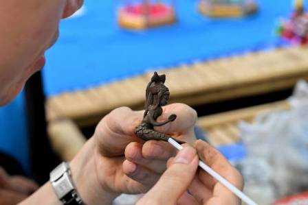 3 เซนติเมตร ไปจนถึงขนาดใหญ่ 10 – 25 เซนติเมตร สามารถถ่ายทอดวิถีชีวิตและวัฒนธรรมไทย เช่น การละเล่นไทย วัฒนธรรมประเพณี ผลไม้ หรือเครื่องดนตรีไทย ในรูปแบบตุ๊กตาจำลองได้อย่างงดงาม โดยปัจจุบันมีผู้ผลิตในพื้นที่ทั้งสิ้น 20 ราย มีปริมาณการผลิต 1,200 ชิ้นต่อปี และสร้างมูลค่าทางการตลาด 360,000 บาทต่อปี