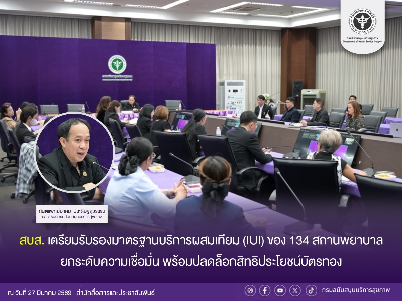 กรมสนับสนุนบริการสุขภาพ (สบส.) กระทรวงสาธารณสุข เตรียมรับรองมาตรฐานสถานพยาบาลที่ให้บริการเฉพาะผสมเทียม (IUI only) 134 แห่ง กำกับมาตรฐานให้เป็นไปตามกฎหมาย สร้างความเชื่อมั่นให้ผู้รับบริการ และปลดล็อกสิทธิประโยชน์การเบิกจ่ายบัตรทองในการรักษาภาวะมีบุตรยากจากสถานพยาบาลที่ให้บริการผสมเทียมและเด็กหลอดแก้ว