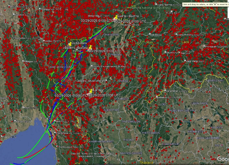 ข้อมูลจุดความร้อน ณ วันที่ 28 มีนาคม 2569 พบว่า ประเทศไทยพบจุดความร้อนทั้งสิ้น 4,291 จุด ส่วนใหญ่พบเจอในพื้นที่ป่ากว่า 3,646 จุด คิดเป็นร้อยละ 85 จังหวัดที่พบจุดความร้อนสูงสุดได้แก่ เชียงใหม่ ลำปาง แม่ฮ่องสอน ตาก และพะเยา ตามลำดับ ทั้งนี้ จุดความร้อนในประเทศเพื่อนบ้าน เมียนมา 10,834 จุด สปป.ลาว 4157 จุด กัมพูชา 849 จุด และเวียดนา 847 จุด โดยเฉพาะบริเวณที่ประชิดกับภาคเหนือและภาคอีสานขยับสูงขึ้นอย่างต่อเนื่องเช่นกัน นอกจากนี้แนวลมบริเวณภาคเหนือตอนบน พบเป็นลมฝ่ายตะวันตก/ตะวันตกเฉียงใต้ พัดเข้าสู่ประเทศไทย ส่งผลให้ประเทศไทยได้รับผลกระทบทั้งจากภายในและภายนอกประเทศ สถานการณ์จึงทวีความรุนแรงอย่างต่อเนื่อง อีกทั้งคาดว่าในช่วง 5-7 วันถัดจากนี้ประเทศไทยตอนบนฝนมีแนวโน้มขาดช่วง หากไม่สามารถควบคุมไฟได้มีโอกาสเกิดการลุกลามได้ง่าย