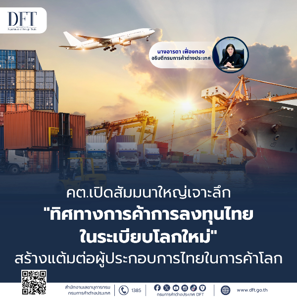 นางอารดาฯ กล่าวเพิ่มเติมว่า กรมฯ มีกำหนดจัดงานสัมมนาครั้งที่ 6 อย่างยิ่งใหญ่ใจกลางเมืองศูนย์กลางธุรกิจการค้า ในวันพุธที่ 8 เมษายน 2569 ณ โรงแรม แกรนด์ เซนเตอร์ พอยต์ ลุมพินี กรุงเทพมหานคร โดยกรมฯ ตั้งใจให้งานสัมมนาครั้งนี้เป็นเวทีที่ผู้ประกอบการจะได้รับข้อมูลสำคัญเพื่อนำไปปรับใช้กับธุรกิจได้ทันที เริ่มจากการทำความเข้าใจ “ทิศทางการค้าและการลงทุนของไทยในระเบียบโลกใหม่” โดย ดร. กิริฎา เภาพิจิตร ผู้ช่วยรัฐมนตรีประจำกระทรวงพาณิชย์ และเคยดำรงตำแหน่งนักเศรษฐศาสตร์อาวุโสประจำธนาคารโลก ซึ่งมีความเชี่ยวชาญสูงด้านการวิเคราะห์เศรษฐกิจไทยและภูมิภาคเอเชีย เพื่อให้รู้เท่าทันแนวโน้มเศรษฐกิจและเตรียมแผนธุรกิจได้อย่างชัดเจน พร้อมรับฟังแนวทางการใช้