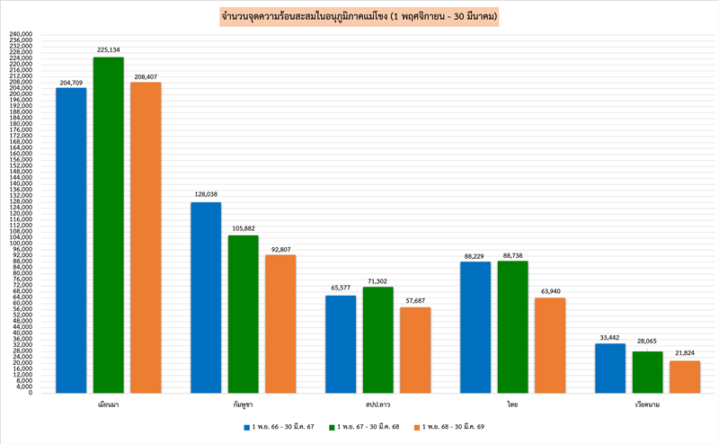 จากการประสานงานดังกล่าว ส่งผลให้สถานการณ์จุดความร้อนมีแนวโน้มลดลงอย่างต่อเนื่อง โดยในเมียนมาจาก 10,834 จุด ลดลงเหลือ 5,505 จุด และใน สปป.ลาว จาก 4,157 จุด ลดลงเหลือ 2,704 จุด เมื่อวันที่ 30 มีนาคมที่ผ่านมา