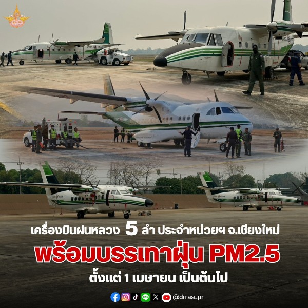 วันที่ 1 เมษายน 2569 เวลา 14.30 น. นายราเชน ศิลปะรายะ อธิบดีกรมฝนหลวงและการบินเกษตร เปิดเผยว่า ตามที่สถานการณ์ปัญหาฝุ่นละอองขนาดเล็ก PM2.5 ในพื้นที่ภาคเหนือ โดยเฉพาะ จ.เชียงใหม่ มีค่าคุณภาพอากาศอยู่ในระดับมีผลต่อสุขภาพอย่างรุนแรง (สีม่วง) จึงได้สั่งการปรับแผนการทำงาน ตั้งหน่วยดัดแปรสภาพอากาศ จ.เชียงใหม่ ระดมเครื่องบิน 5 ลำ ได้แก่ L410 2 ลำ CASA 2 ลำ และ CN 1 ลำ ปฏิบัติการด้วยเทคนิคการโปรยน้ำแข็งแห้ง การสเปรย์น้ำเย็น ระบายฝุ่นออกจากพื้นที่ และช่วงชิงสภาพอากาศก่อเมฆ เลี้ยงเมฆเพื่อให้เกิดฝนตก โดยในบ่ายวันนี้ มีการปฏิบัติการในเวลา 14.30 น. ใช้เครื่องบินขนาดกลาง CASA จำนวน 1 ลำ ปฏิบัติการด้วยการโปรยน้ำแข็งแห้งเพื่อระบายฝุ่นละออง บินที่ความสูงระดับ 4,000 ฟุต บริเวณ อ.แม่ออน จ.เชียงใหม่ และใช้เครื่องบินขนาดกลาง CASA จำนวน 1 ลำ บินปฏิบัติการในเวลา 14.45 น. ด้วยเทคนิคการเลี้ยงเมฆเพื่อดูดซับและระบายฝุ่นละออง บินที่ความสูงระดับ 9,500 ฟุต บริเวณ อ.ปาย จ.แม่ฮ่องสอน – อ.แม่แจ่ม จ.เชียงใหม่ เพื่อช่วยบรรเทาและระบายฝุ่นละอองใน จ.เชียงใหม่ และพื้นที่ภาคเหนือ