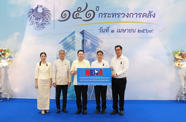พันเอกศรัณยู วิริยเวชกุล พร้อมด้วย นายกีรติ เวฬุวัน รองผู้อำนวยการสำนักงานความร่วมมือพัฒนาเศรษฐกิจกับประเทศเพื่อนบ้าน (องค์การมหาชน) (สพพ.) ร่วมแสดงความยินดีกับกระทรวงการคลัง เนื่องในโอกาสวันคล้ายวันสถาปนากระทรวงการคลังครบรอบ 151 ปี ในโอกาสนี้ สพพ. ได้ร่วมบริจาคเงินสมทบทุนให้แก่วัดน้อยนพคุณ เพื่อใช้ในการทำนุบำรุงพระพุทธศาสนาและศาสนสถาน โดยมีนายลวรณ แสงสนิท ปลัดกระทรวงการคลัง เป็นผู้รับมอบ ณ อาคาร 150 ปี กระทรวงการคลัง เมื่อวันที่ 1 เมษายน 2569