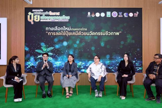 หัวข้อเรื่องที่ 2) หัวข้อเรื่องการเสวนาเรื่อง “ทางเลือกใหม่เกษตรกรไทย: การลดใช้ปุ๋ยเคมีด้วยนวัตกรรมชีวภาพ”มุ่งเน้นการใช้จุลินทรีย์และสารชีวภาพเพื่อเพิ่มประสิทธิภาพการผลิต ลดผลกระทบต่อสิ่งแวดล้อม ผ่านนวัตกรรม ได้แก่