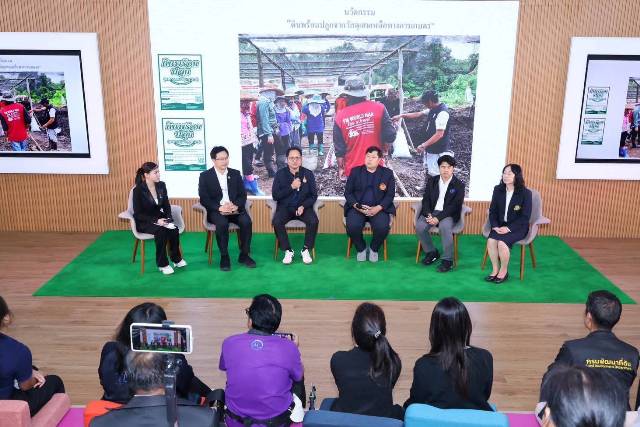 โดยแบ่งการเสวนาออกเป็น 2 เรื่อง ได้แก่ หัวข้อเรื่องที่ 1) การเสวนาเรื่อง “ทางออกเกษตรกรไทย: การทดแทนปุ๋ยเคมีด้วยนวัตกรรมจากวัสดุเหลือใช้”นำเสนอแนวทางใช้วัสดุเหลือทิ้งและวัสดุชีวภาพมาเพิ่มมูลค่าและลดต้นทุนการผลิตทางการเกษตร ผ่านนวัตกรรมต่าง ๆ ได้แก่