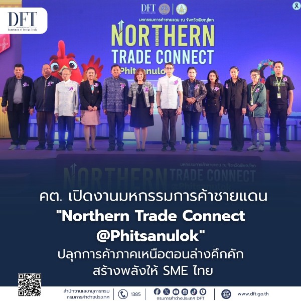 ยิ่งไปกว่านั้น งาน Northern Trade Connect @Phitsanulok ยังเนรมิตพื้นที่หน้าลานบิ๊กซี จังหวัดพิษณุโลก ให้กลายเป็นมหกรรมการค้าที่มีความสนุกและความครึกครื้นอย่างแท้จริง ด้วยการตกแต่งแสง สี เสียง พร้อมเต๊นท์แอร์ และมินิคอนเสิร์ตจากศิลปินชื่อดังตลอด 4 วัน เรียกได้ว่าครบทั้งช้อปปิ้ง ธุรกิจ และความบันเทิงในงานเดียว จึงขอเชิญชวนประชาชนชาวพิษณุโลกและจังหวัดใกล้เคียงร่วมสัมผัสความยิ่งใหญ่ของงานได้ตั้งแต่วันนี้ ถึงวันที่ 5 เมษายน 2569 ตั้งแต่เวลา 11.00 – 21.00 น. ติดตามรายละเอียดเพิ่มเติมได้ที่ www.dft.go.th, Facebook: กรมการค้าต่างประเทศ DFT และสายด่วน 1385 DFT Call Center
