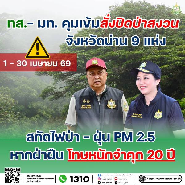 ทส. – มท. คุมเข้ม สั่งปิดป่าสงวนจังหวัดน่าน 9 แห่ง สกัดไฟป่า – ฝุ่น PM 2.5 หากฝ่าฝืนโทษหนักจำคุก 20 ปี