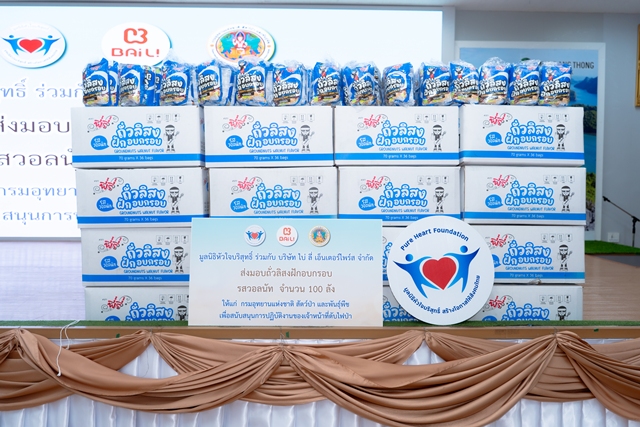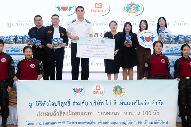 วันที่ 7 เมษายน 2569 นางเธียรรัตน์ นะวะมะวัฒน์ ประธานมูลนิธิหัวใจบริสุทธิ์ พร้อมทีมงาน ร่วมกับ จ.ส.อ.หญิงวรรณภา ปานสุข ผู้ช่วยผู้บริหาร บริษัท ไบ่ ลี่ เอ็นเตอร์ไพร์ส จำกัด ลงพื้นที่มอบขนมถั่วลิสงฝักอบกรอบ รสวอลนัท จำนวน 100 ลัง (3,600 ชิ้น) มูลค่ารวม 90,000 บาท ซึ่งได้รับการสนับสนุนจาก คุณสราญจิตร หวัง กรรมการบริษัท บริษัท ไบ่ ลี่ เอ็นเตอร์ไพร์ส จำกัด โดยมีนายอรรถพล เจริญชันษา อธิบดีกรมอุทยานแห่งชาติ สัตว์ป่า และพันธุ์พืช เป็นผู้แทนรับมอบ