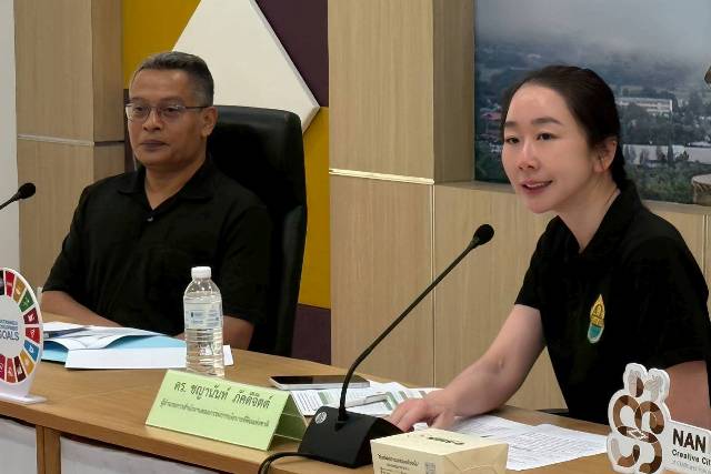 วันที่ 7 เมษายน 2569 ดร.ชญานันท์ ภักดีจิตต์ ผู้อำนวยการสำนักงานคณะกรรมการนโยบายที่ดินแห่งชาติ (ผอ.สคทช.) ประธานการประชุมหารือแนวทางความร่วมมือขับเคลื่อนตราสัญลักษณ์ผลิตภัณฑ์ คทช. เพื่อเตรียมความพร้อมในการปฏิบัติตามข้อกำหนดของกฎระเบียบว่าด้วยสินค้าปลอดการตัดไม้ทำลายป่า ของสหภาพยุโรป (EU Regulation on Deforestation-free Products: EUDR) ในพื้นที่ คทช. โดยมีนายบรรจง ขุนเพชร รองผู้ว่าราชการจังหวัดน่าน พร้อมด้วย ผู้แทนสำนักงานทรัพยากรธรรมชาติและสิ่งแวดล้อมจังหวัดน่าน ผู้แทนสำนักงานที่ดินจังหวัดน่าน ผู้แทนสำนักจัดการทรัพยากรป่าไม้ที่ 3 (สาขาแพร่) ผู้แทนสำนักงานสหกรณ์จังหวัดน่าน ส่วนราชการที่เกี่ยวข้อง และคณะผู้บริหาร เจ้าหน้าที่ สคทช. ณ ห้องประชุมเจ้ามหาพรหมสุรธาดา ชั้น 6 ศาลากลางจังหวัดน่าน