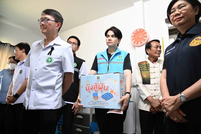 สำหรับกลุ่มเปราะบาง ได้แก่ เด็กเล็ก หญิงตั้งครรภ์ ผู้สูงอายุ ผู้ป่วยโรคหัวใจ และโรคทางเดินหายใจ รวม 4.2 แสนราย เจ้าหน้าที่ รพ.สต.และ อสม. ได้ออกติดตามเยี่ยมบ้าน แจกหน้ากากป้องกันฝุ่นและให้คำแนะนำ อาทิ การจัดสิ่งแวดล้อม การทำห้องปลอดฝุ่นในบ้าน ไปแล้ว 3.08 แสนราย โดยมีการแจกหน้ากากป้องกันฝุ่นให้กับกลุ่มเปราะบางและประชาชนรวม 311,767 ชิ้น และจัดหามุ้งปลอดฝุ่นสำหรับกลุ่มผู้ป่วยติดเตียง 187 หลัง ทั้งนี้ พื้นที่ค่าฝุ่นสูงในระดับมีผลกระทบต่อสุขภาพ จะมีการจัดหน่วยแพทย์เคลื่อนที่ระดับอำเภอออกตรวจคัดกรองสุขภาพและให้คำแนะนำการปฏิบัติตน และกรณีพบการเจ็บป่วยเป็นกลุ่มก้อนหรือผิดปกติ จะจัดทีมปฏิบัติการร่วมกับสำนักงานป้องกันควบคุมโรคที่ 1 ลงพื้นที่สอบสวนโรคด้วย