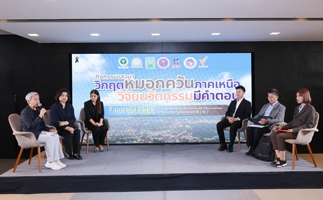 ดร.วิภารัตน์ ดีอ่อง ผู้อำนวยการสำนักงานการวิจัยแห่งชาติ กล่าวว่า วช. ภายใต้กระทรวง อว. มุ่งขับเคลื่อนงานวิจัยและนวัตกรรมให้ตอบโจทย์ปัญหาสำคัญของประเทศ โดยเฉพาะสถานการณ์ฝุ่น PM2.5 ในพื้นที่ภาคเหนือ ที่ยังคงอยู่ในระดับวิกฤต หลายพื้นที่มีค่าฝุ่นอยู่ในระดับสีแดงที่ส่งผลกระทบต่อสุขภาพของประชาชน โดยมีสาเหตุสำคัญจากการเผาในพื้นที่ป่า ทั้งในประเทศและประเทศเพื่อนบ้าน รวมถึงลักษณะภูมิประเทศที่ทำให้ฝุ่นสะสมและไม่สามารถระบายออกได้ ส่งผลให้ประชาชนมีความเสี่ยงต่อโรคระบบทางเดินหายใจและปัญหาสุขภาพในระยะยาว วช. ตระหนักถึงความสำคัญของปัญหาดังกล่าว และมุ่งเน้นการนำวิทยาศาสตร์ วิจัย และนวัตกรรม มาเป็นเครื่องมือสำคัญในการสนับสนุนการแก้ไขปัญหาอย่างเป็นระบบ โดยบูรณาการความร่วมมือจากทุกภาคส่วน ทั้งหน่วยงานภาครัฐ นักวิจัย และภาคประชาชน เพื่อให้เกิดแนวทางการจัดการที่มีประสิทธิภาพและยั่งยืนการเสวนาครั้งนี้มีการนำเสนอข้อมูลสถานการณ์มลพิษทางอากาศ แนวทางการรับมือผลกระทบด้านสุขภาพ มาตรการป้องกันฝุ่น PM2.5 ตลอดจนการนำเสนอนวัตกรรมที่ช่วยบรรเทาปัญหา เช่น ห้องปลอดฝุ่น รวมถึงการสะท้อนปัญหาและอุปสรรคในพื้นที่ พร้อมเสนอแนวทางการแก้ไขปัญหาที่ต้นตอ ควบคู่กับการสื่อสารเชิงรุกและการมีส่วนร่วมของภาคประชาชน