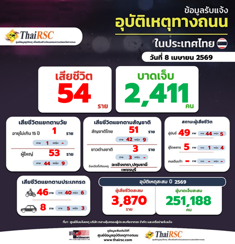 สถานการณ์อุบัติเหตุทางถนนในประเทศไทย วันที่ 8 เม.ย.69