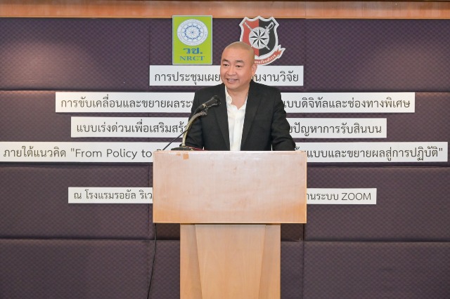 วันที่ 8 เมษายน 2569 สำนักงานการวิจัยแห่งชาติ (วช.) กระทรวงการอุดมศึกษา วิทยาศาสตร์ วิจัยและนวัตกรรม ร่วมกับโรงเรียนนายร้อยตำรวจ จัดการประชุมเผยแพร่แผนงานวิจัยการขับเคลื่อนและขยายผลระบบบริการภาครัฐรูปแบบดิจิทัลและช่องทางพิเศษแบบเร่งด่วน เพื่อเสริมสร้างธรรมาภิบาลและแก้ไขปัญหาการรับสินบน ภายใต้แนวคิด “From Policy to Practice: ขับเคลื่อนนโยบายสู่ต้นแบบและขยายผลสู่การปฏิบัติ” โดยมี ศ.พล.ต.ต.ดร.ชัชนันท์ ลีระเติมพงษ์ รองผู้บัญชาการโรงเรียนนายร้อยตำรวจ เป็นประธานเปิดการประชุม พร้อมด้วยนักวิชาการ และผู้ที่เกี่ยวข้องเข้าร่วม ณ ห้องบุษบงกช เอ ชั้น 2 โรงแรมรอยัล ริเวอร์ กรุงเทพฯ