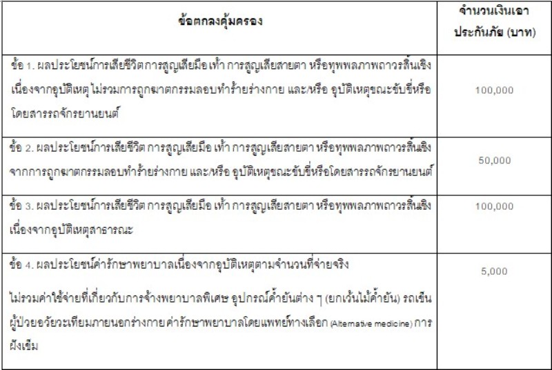 โดยความคุ้มครองตามกรมธรรม์ประกอบด้วย