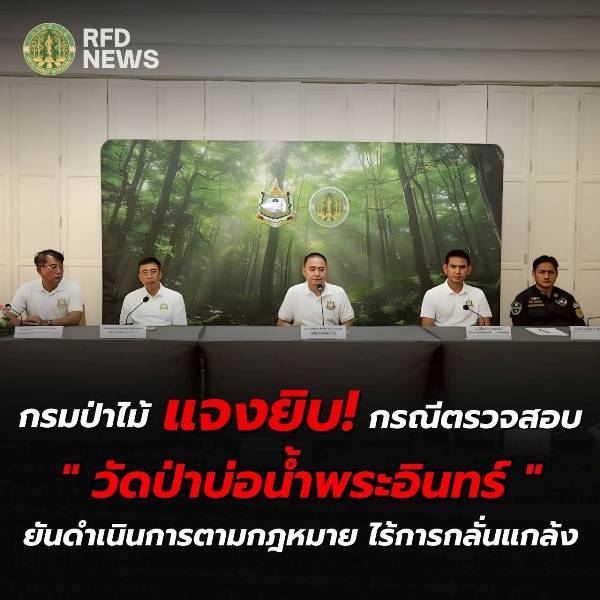 กรมป่าไม้ แถลงข่าวชี้แจงกรณีหน่วยพยัคฆ์ไพร เข้าตรวจสอบที่พักสงฆ์วัดป่าบ่อน้ำพระอินทร์ จ.อุบลราชธานี พบก่อสร้างสิ่งปลูกสร้างนอกเขตอนุญาตกว่า 12 ไร่ พร้อมโต้ประเด็นวิพากษ์วิจารณ์ในสื่อสังคมออนไลน์ เกี่ยวกับภาพถ่ายดาวเทียม