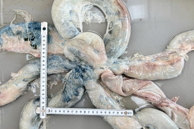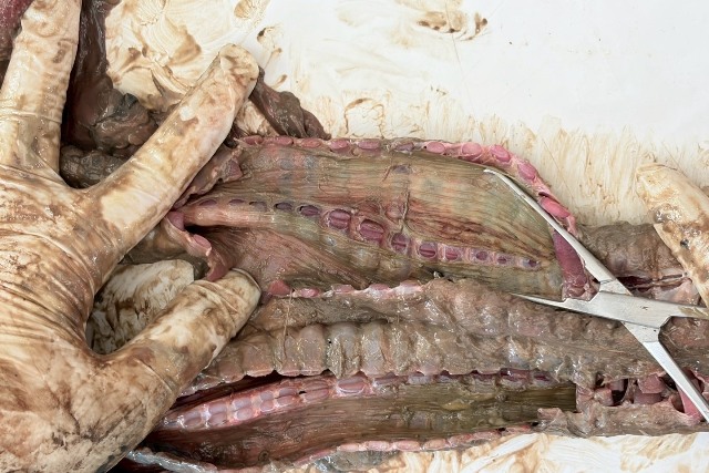 -กระเพาะอาหารมีน้ำเป็นหลัก พบหญ้าเพียงเล็กน้อย สะท้อนถึงภาวะอดอาหารเป็นเวลานาน