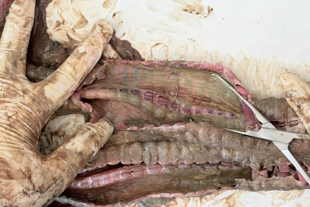 ผลการตรวจสอบเบื้องต้นพบว่า พะยูนตัวดังกล่าวเกยตื้นเสียชีวิตจากภาวะลำไส้อักเสบเรื้อรัง ก่อนถูกตัดหัวภายหลังเสียชีวิตแล้วประมาณ 2–24 ชั่วโมง โดยไม่พบร่องรอยการทำร้ายขณะมีชีวิต หรือการล่าเพื่อเอาชิ้นส่วน อย่างไรก็ตาม ลักษณะบาดแผลมีความคมชัด บ่งชี้ว่าผู้ก่อเหตุมีความชำนาญสูง สามารถตัดบริเวณข้อกระดูกคอได้อย่างแม่นยำ และพบร่องรอยการยึดร่างระหว่างก่อเหตุ