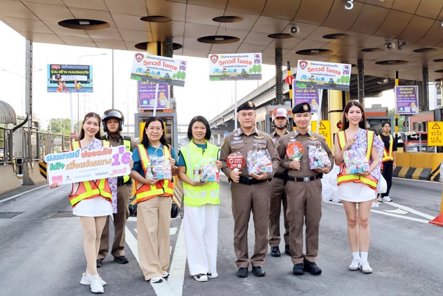 DMT ผนึกทีมตร.จร. ลุยแจกกระเป๋ากันง่วงช่วงสงกรานต์ให้ผู้ใช้ทางด่วน Tollway เดินทางปลอดภัย
