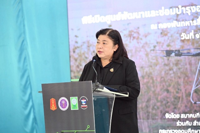 ดร.วิภารัตน์ ดีอ่อง ผู้อำนวยการสำนักงานการวิจัยแห่งชาติ กล่าวว่า วช. ภายใต้กระทรวง อว. ได้ให้ความสำคัญอย่างยิ่งต่อการส่งเสริมและสนับสนุนงานวิจัยและนวัตกรรม โดยเฉพาะด้านอากาศยานไร้คนขับ ซึ่งเป็นเทคโนโลยีสำคัญในการพัฒนาประเทศในยุคดิจิทัล โดย วช. มุ่งหวังผลักดันให้เกิดการบูรณาการงานวิจัยสู่การใช้ประโยชน์จริง ผ่านความร่วมมือกับหน่วยงานต่าง ๆ เพื่อยกระดับขีดความสามารถในด้านมิติของความมั่นคง รวมถึงการสร้างกำลังคนที่มีทักษะสูงรองรับอนาคต การจัดตั้งศูนย์ในครั้งนี้ จึงถือเป็นกลไกสำคัญในการเชื่อมโยงองค์ความรู้สู่การปฏิบัติ และเป็นต้นแบบของการขับเคลื่อนงานวิจัยสู่การพัฒนา